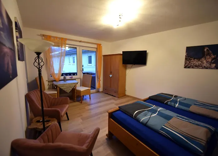 Als u in Ferienwohnung Am Rathaus Garmisch-Partenkirchen van 30 m² verblijft, kunt u Kuhfluchtwasserfälle bereiken, gelegen 3 km verder. Bij het 1-slaapkamer appartement is wifi en een privéparkeerplaats beschikbaar.